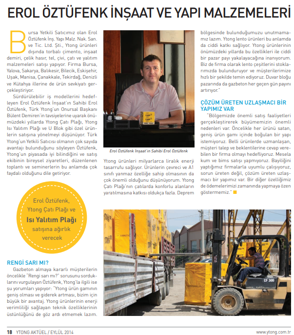 • Türk Ytong’un 9 yıldır üst üste Güney Marmara satış şampiyonuyuz.